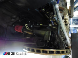 Das Hinterachsgetriebe ist mit dem Differentialdeckel vom Z3 M ausgerüstet. Danach habe ich die ungefederte Masse errechnet, es sind also alle Achs- und Bremsteile,