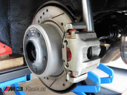Die Bremsanlage auf der Hinterachse sind mit anderen Stahlscheiben in der gleichen Seriengröße anderen Bremsklötzen und Stahlflex Leitungen verbaut.